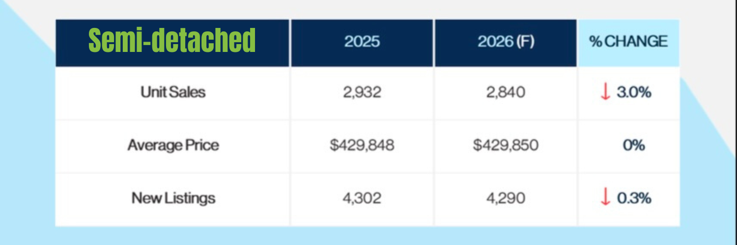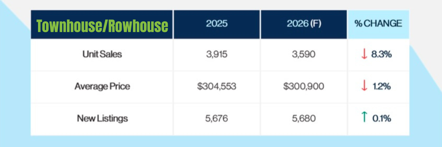 As we head into 2026, Edmonton’s real estate market is showing clear signs of stability and long-term sustainability. After several years of heightened activity and strong demand, the market is expected to transition into a more balanced environment—one that benefits both buyers and sellers alike.Home prices in Edmonton are forecasted to increase by approximately 1.3% in 2026. While this represents more moderate growth compared to recent years, it reflects a healthy and sustainable trajectory rather than an overheated market. The average price in the Edmonton market is expected to be $464,210. See image below that shows the different style of homes and their forecast. It breaks down semi-detached (duplexes), Row/townhouses, and detached homes.